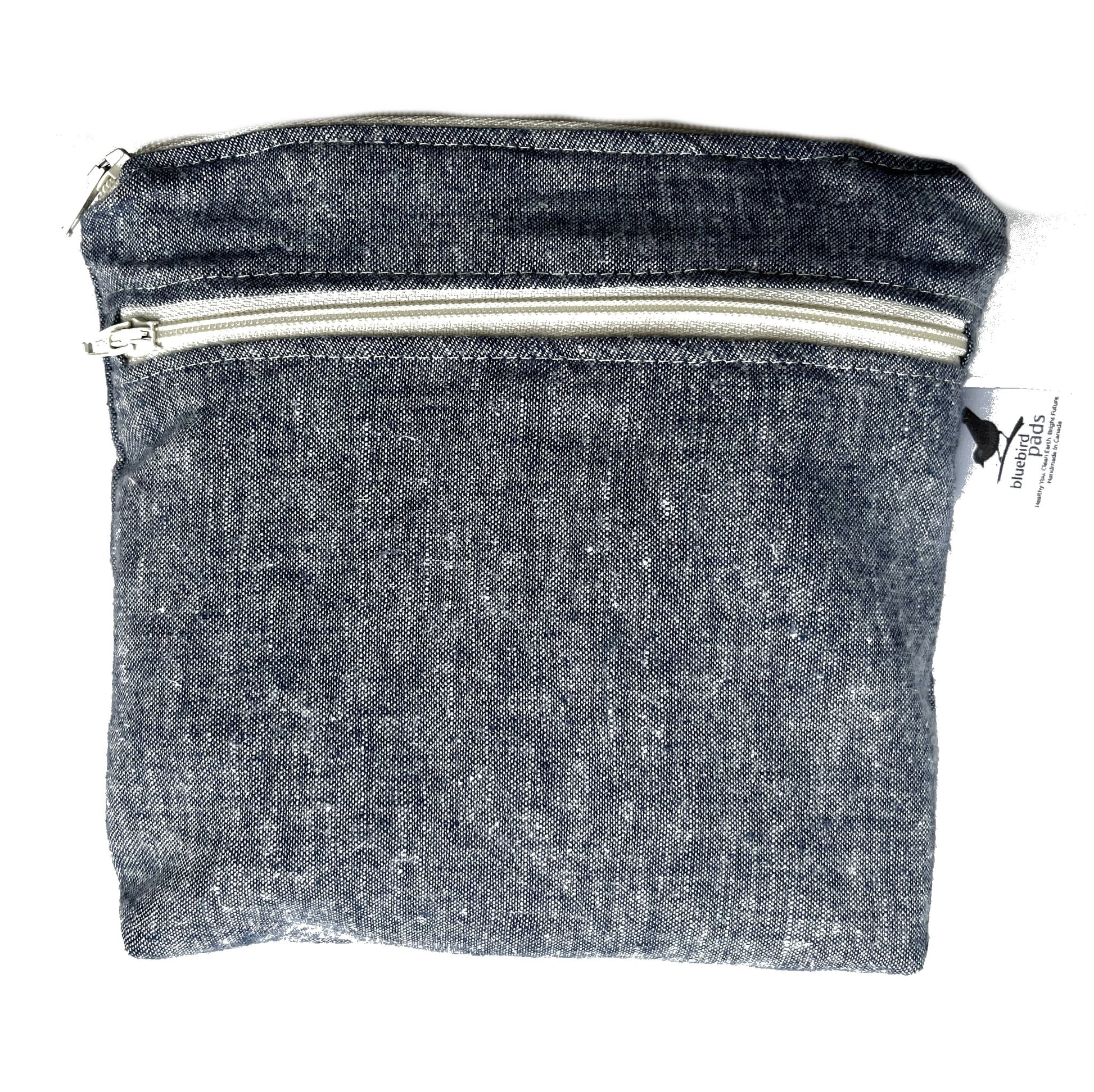 Our dual zippered pocket wet bag is perfect for storing your Bluebird Pads either at home or on the go! A secure overlapping pocket for dry items and a roomy zippered waterproof pocket for wet items make these bags practical and versatile. They are ideal for cloth pads, cosmetics, toiletries, essential oils and more! Each item is lovingly handmade and features boxed corners, zipper tabs and gorgeous hemp & organic cotton.